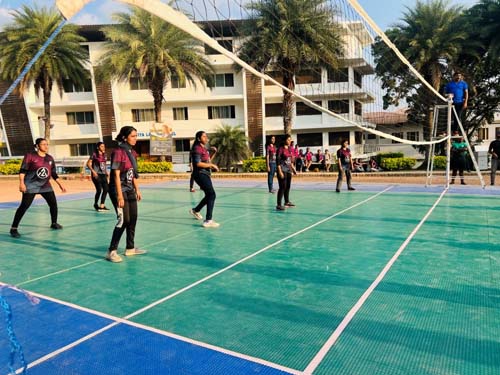 The college campus is spread across an area of 5 acres and includes a lavish cricket ground. The campus also boasts its own football ground. The basketball court, renovated to meet national-level regulations, is the newest addition to our sports facilities. Additionally, there are volleyball and badminton courts available to students throughout their academic period.